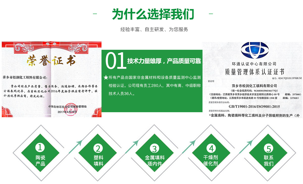萍鄉(xiāng)市松潤化工填料有限公司位于江西省萍鄉(xiāng)市國家經(jīng)濟(jì)開發(fā)區(qū)西區(qū),是專業(yè)生產(chǎn)、經(jīng)營陶瓷、聚丙烯、金屬填料、塔內(nèi)件、水處理濾板、濾管、濾料、瓷球、分子篩、催化劑、活性炭、蜂窩陶瓷、瓷質(zhì)耐磨托輥等系列產(chǎn)品的民營企業(yè)。所有產(chǎn)品由國家非金屬材料和設(shè)備質(zhì)量監(jiān)測中心監(jiān)測檢驗認(rèn)證。公司現(xiàn)有員工280人,其中有高、中級職稱技術(shù)人員36人。工藝先進(jìn),技術(shù)力量雄厚,產(chǎn)品質(zhì)量可靠,配...